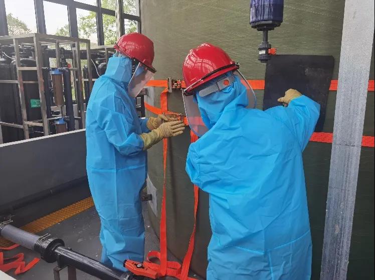 在結合理論學習之后,加強生產人員應急處置和實操能力的演練。在演練環節,模擬瓜洲變電所在生產運行中35KV古洲線突發失電,值班人員啟動應急處置程序。班組人員按應急預案步驟切除相關高壓低壓開關設備,再經過一系列倒閘操作,迅速切換到到備用線路上,恢復了生產用電,并做好巡查匯報工作。演練采取實操方式進行,整個倒閘操作過程步驟有序,嚴格按照突發事故處理流程進行演練,嚴格使用規范的操作術語,對所涉及到的驗電、分合開關、檢查設備等操作符合安規要求,達到了預期效果。為強化?;饭芾?,提升員工應急處置能力。近日,頭橋水廠針對次氯酸鈉制備和管理的安全操作規程要求,組織了次氯酸鈉儲罐和投加管道泄漏兩個科目的應急處置演練,通過提升應急處置能力,不斷強化?;返墓芾砗褪褂谩?/p>