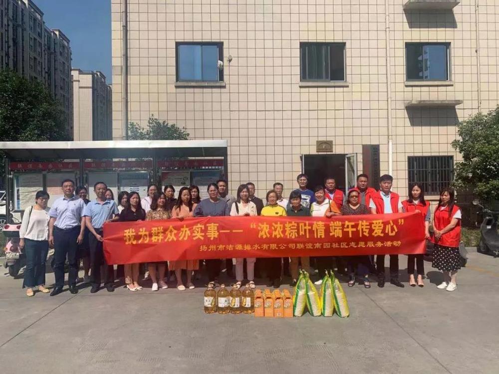 6月4日下午,潔源排水公司黨總支組織20余名志愿者來到聯誼南園聯康苑社區,開展了 “濃濃粽葉情、愛心進社區”黨員志愿服務活動,潔源排水公司領導班子成員參加了本次活動。