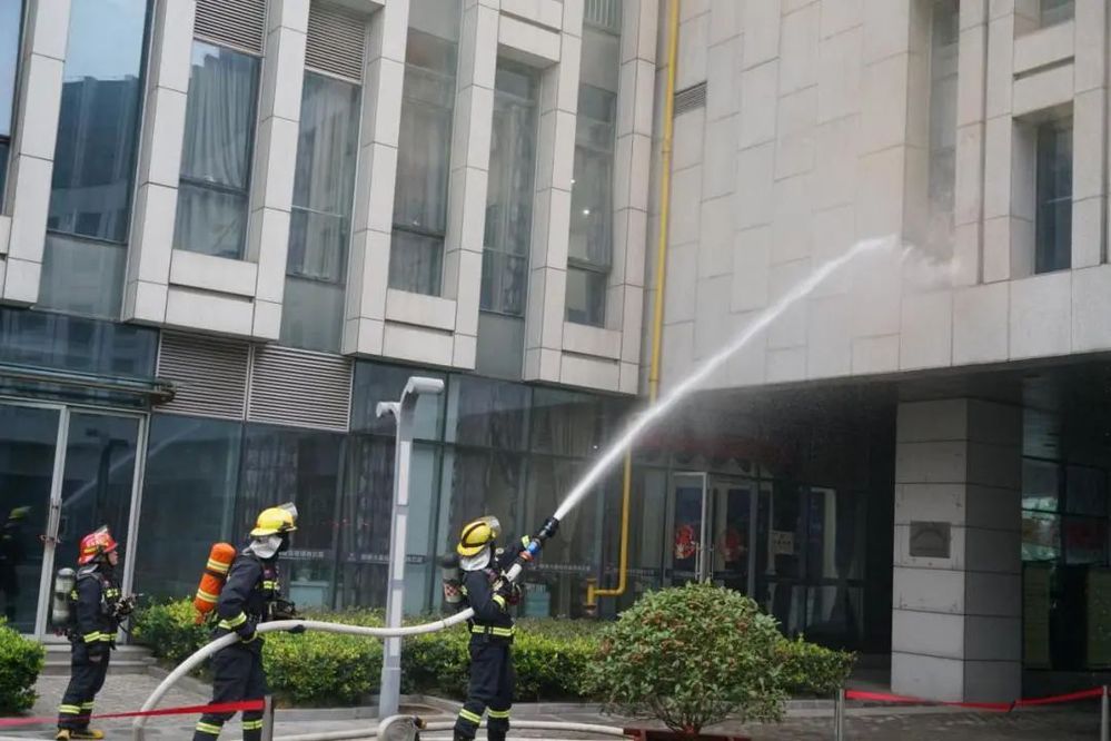 在消防疏散應急演練環節,演練人員模擬國泰大廈發生火災,開展了值班人員確認火情、初期滅火、人員疏散逃生、報警和引接消防員等應急演練流程。同時,邗江區消防大隊在內街廣場開展了消防滅火器的使用培訓,職工、物業管理、業主代表等人員參與了滅火器使用實操。
