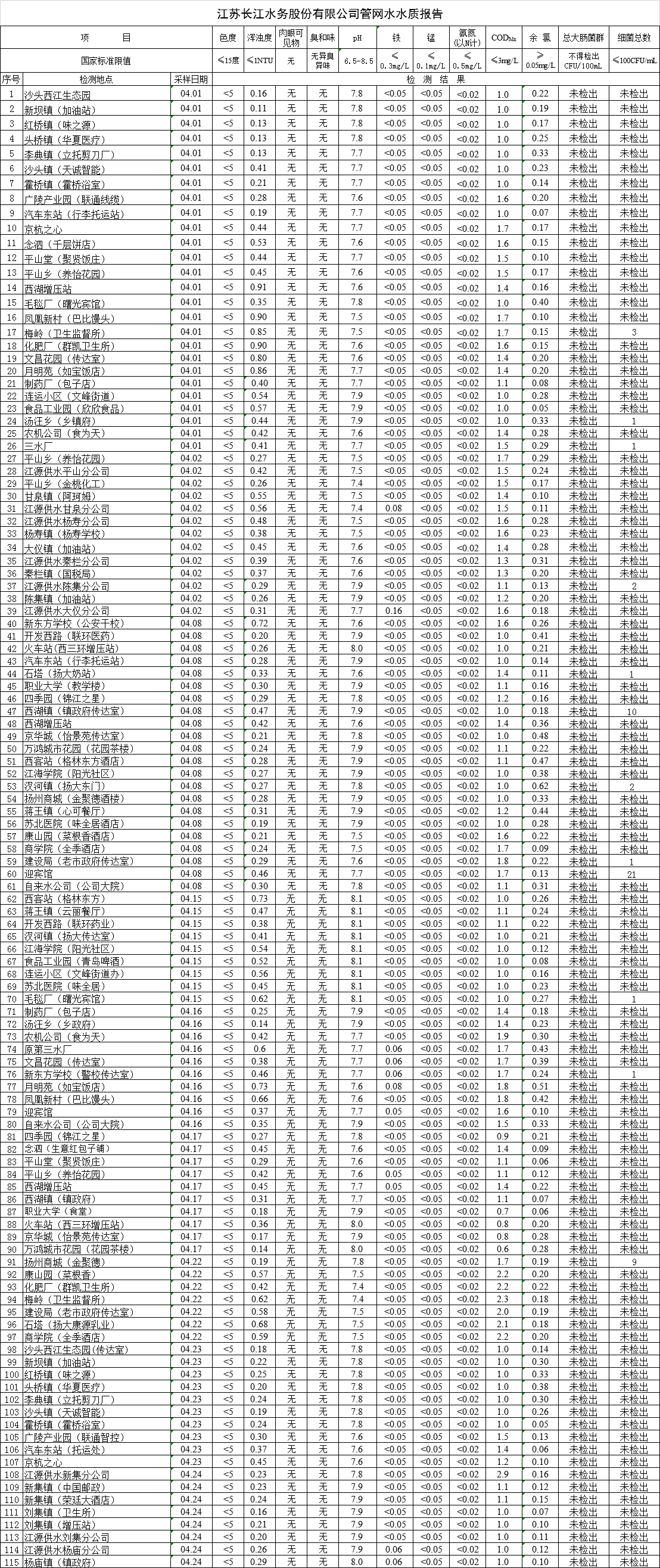 江蘇長江水務股份有限公司管網水水質報告(2019年4月)