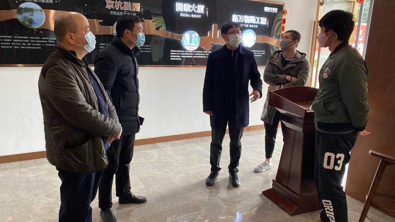 2月24日上午,城控集團副總經理方璇智帶隊赴置業公司九境融園項目部、九境融園售樓處、頤和醫療健康中心項目部,督查建筑工地復工、疫情防控和安全生產工作。