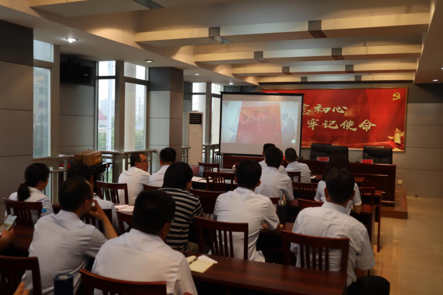 最后,與會人員集體觀看了學習黨史電教片《初心使命—學黨章,知黨史》。