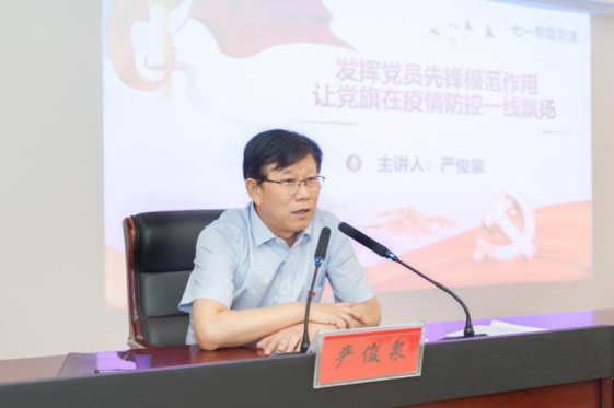 6月30日上午,城控集團黨委委員、總工程師嚴俊泉以《發揮黨員先鋒模范作用,讓黨旗在疫情一線飄揚》為題,在長江水務講授專題黨課。長江水務黨委副書記主持黨課,長江水務黨委班子成員、各黨支部書記、黨員代表和入黨積極分子參加本次學習。