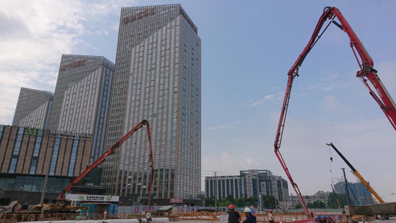 15時30分,第一輛混凝土車在文昌路南側敞開段施工現場外等候;15時40分,混凝土坍落度實驗開始;15時43分,隨著一聲響亮的信號,兩輛泵車輸送管同時就位,文昌路隧道首段底板正式澆筑……