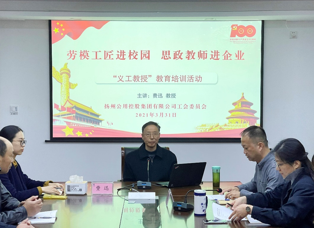 為慶祝建黨100周年,深入開展黨史學習教育,3月31日下午,公用控股集團舉辦“思政教師進企業”活動,特邀揚州大學馬克思主義學院教授費迅作專題講座,公司全體干部員工參加活動。