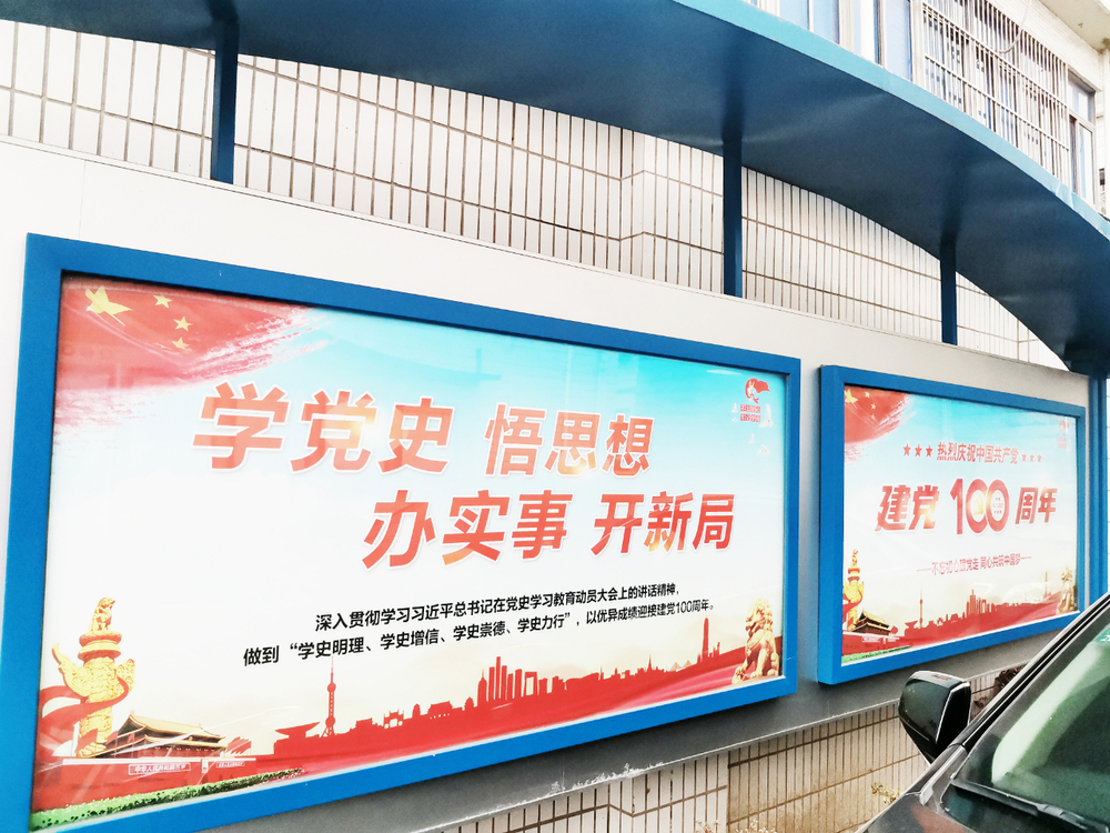為全面扎實推進黨史學習教育,長江水務公司結合實際,對公司大院的宣傳欄進行了更新,宣傳欄內容主要圍繞“黨史十個關鍵詞”和“回顧中共一大至十九大”展開,內容豐富、制作精美,圖文并茂地展示了中國共產黨波瀾壯闊的百年奮斗史以及全部的發展歷程,不僅打造了長江水務專屬的黨史教育長廊,而且通過耳目一新的宣傳內容,潛移默化的教育形式營造了濃厚的紅色氛圍。