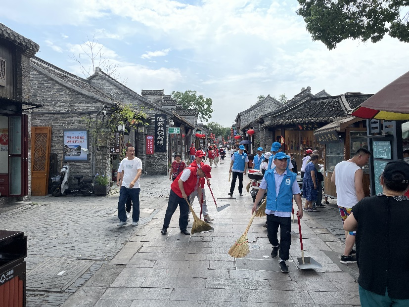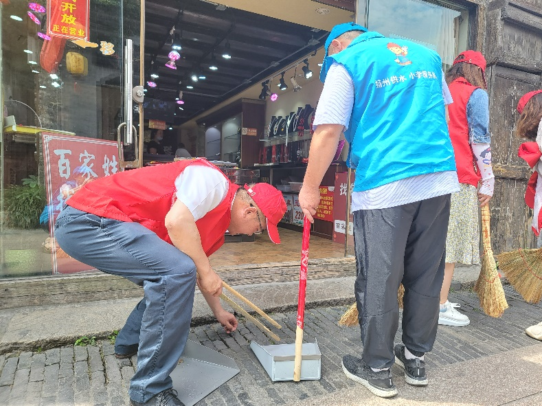 共建活動開始后,所有黨員合并隊伍,并分成兩隊。其中一隊帶著掃把、簸箕、夾子、垃圾袋,對東關街沿街進行清掃,不錯過一張紙屑、一個煙頭、一片落葉;另一隊的黨員則是走訪沿街商鋪的用戶,詢問用戶商鋪中是否存在用水問題,同時對沿街水管進行測漏檢查以及對消防設施進行檢查維護。