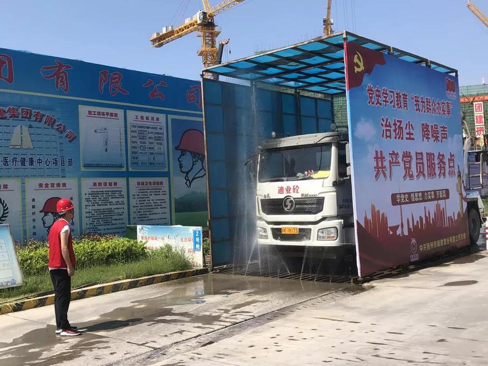 活動中,黨員志愿者兵分兩路出發,一處向周邊群眾和施工作業人員分發宣傳我公司為保護城市生態環境底色開展的一系列揚塵降噪舉措;另一處志愿者在項目出入口處指揮檢查進出車輛沖洗情況,嚴禁拖泥帶污車輛駛出場外,影響周邊環境衛生,造成城市道路污染。目前我公司在建項目所有建筑工地均增添灑水降塵設施,工地實施6個100%治理標準,即:施工現場圍擋率、工地物料堆放覆蓋率、路面硬化率、車輛沖洗率、濕法作業率、運土車輛密閉率均達到100%。隨后,黨員志愿者們在項目負責人的帶領下見證了“智慧工地”系統和BIM-VR安全教育系統在實際工作中的應用,“智慧工地”的運用實現了隨時隨地可對項目安全、質量、揚塵防控及進度等各方面的全覆蓋無死角管理。大家在感慨國家科技水平日新月異進步的同時也增強了學好本領多為群眾辦實事的思想自覺和行動自覺。