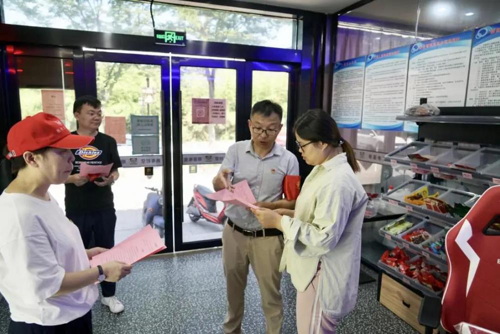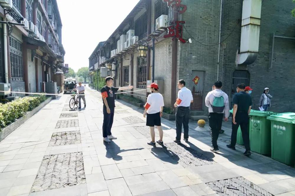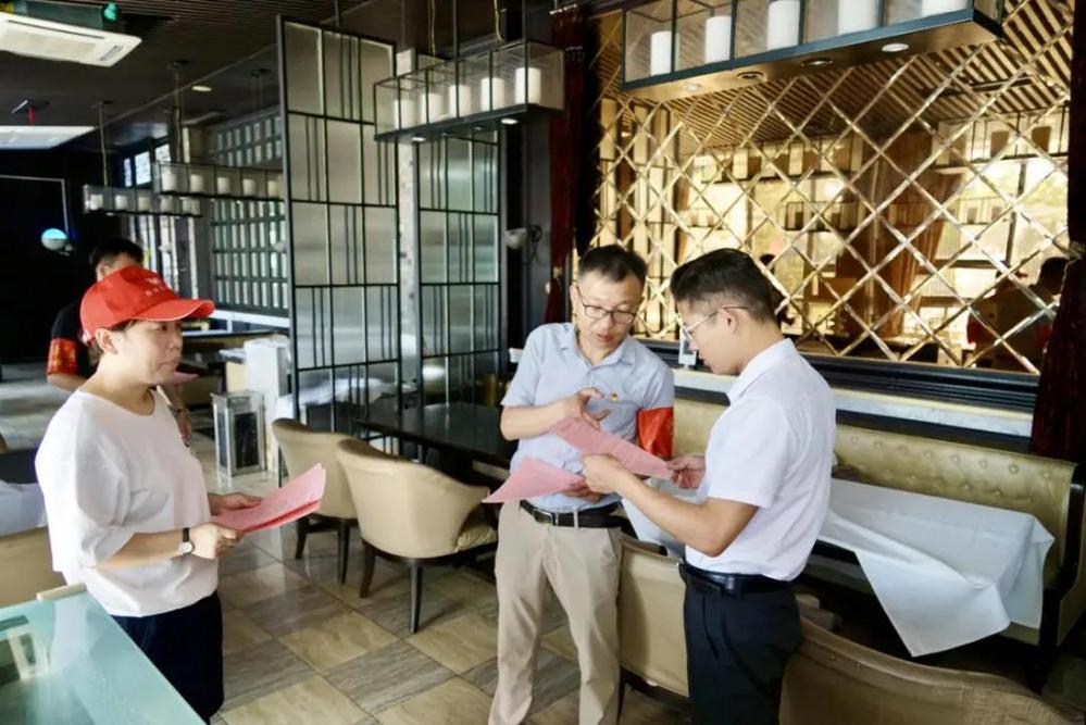 黨員志愿者們兵分兩路,一部分黨員志愿者在演練現場幫助工作人員進行現場引導與疏導,另外一部分黨員志愿者則前往街區內的各家餐飲門店,上門進行消防安全知識宣傳講解和消防安全知識宣傳資料的發放。