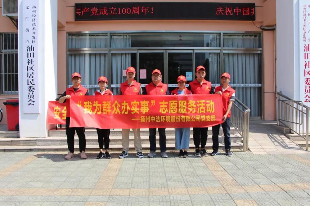 為充分發揮黨員先鋒模范作用,切實推動黨史學習教育開展,扎實推進“我為群眾辦實事”工作,6月24日上午,揚州中法環境公司黨支部走進了油田社區開展黨員志愿者服務活動。