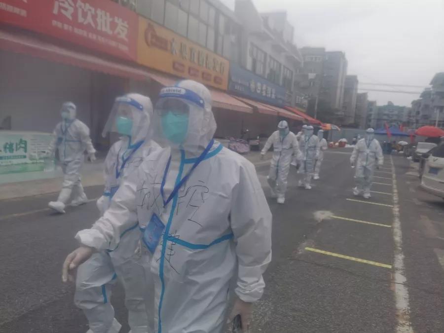 秋老虎帶來了酷熱,不消片刻,志愿者們裹著密閉的防護服汗如雨下,但志愿者們沒有一人退縮,始終堅守崗位,為疫情防控守好關卡、筑牢安全防線,用實際行動踐行初心和使命。