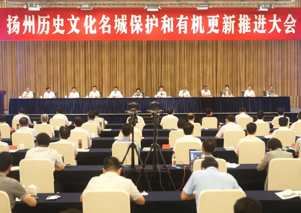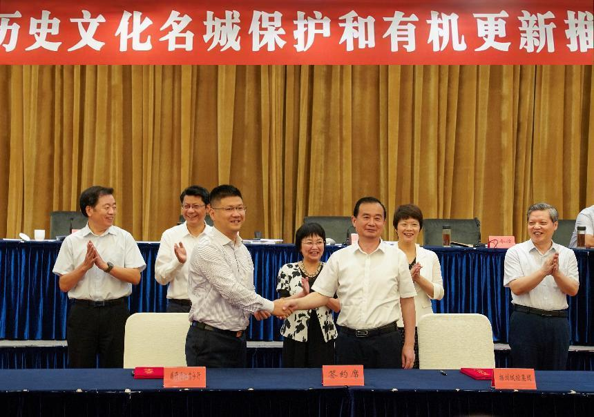 7月19日上午,市委、市政府召開揚州歷史文化名城保護和有機更新推進大會。市委書記張寶娟、省住房和城鄉建設廳廳長周嵐出席會議并講話,市長王進健主持會議,市人大常委會主任孔令俊、國開行江蘇省分行副行長劉宗岐參加會議。會上,城控集團與國家開發銀行江蘇省分行簽署戰略合作協議,城控集團董事長葉善祥、國開行江蘇省分行二處處長姜方放分別代表雙方簽約。
