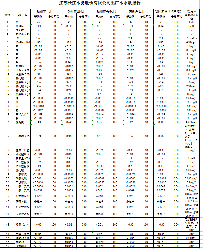 江蘇長江水務股份有限公司出廠水水質報告 ( 2021 年 12月 )