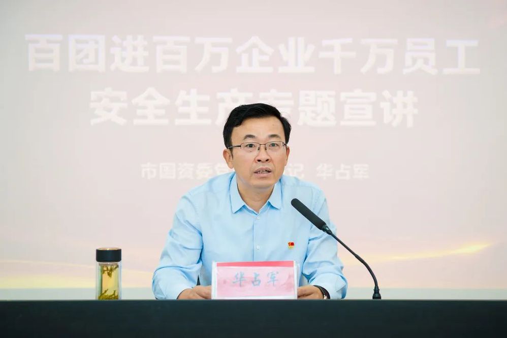 華占軍從深刻學習領會習近平總書記關于安全生產的重要論述、新《安全生產法》的修訂背景及重點內容、企業需要重點關注的安全事項三個方面進行宣講。