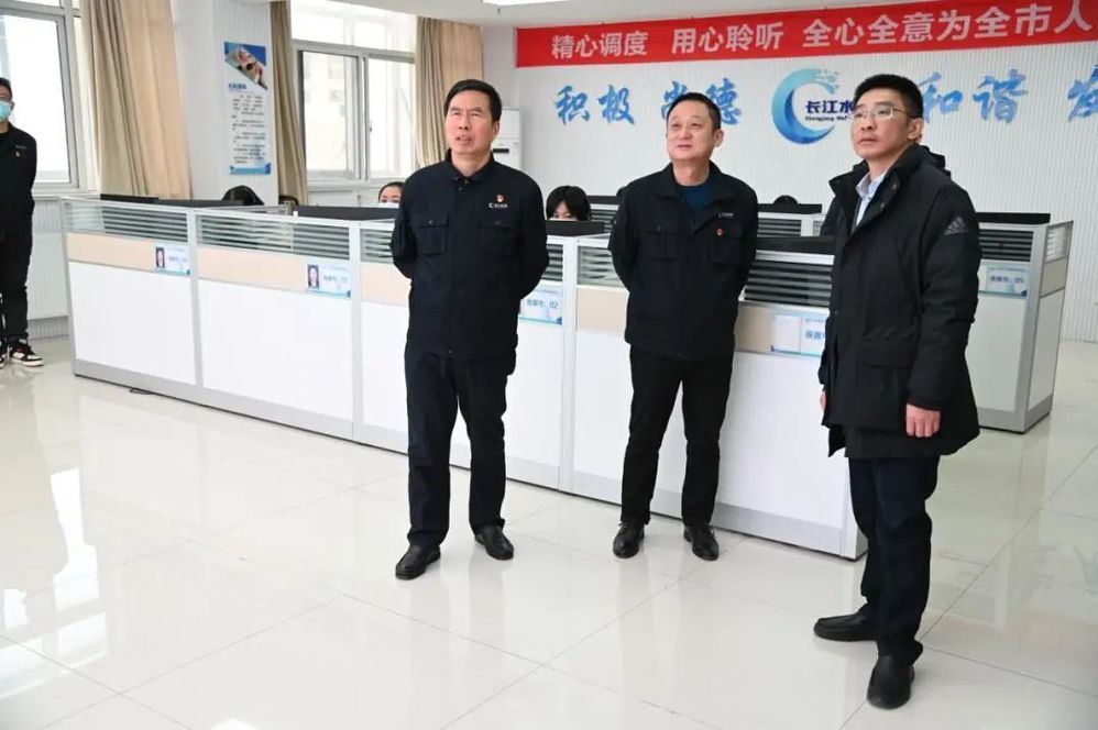 在長江水務公司調度指揮中心,徐飛聽取了供水調度和搶維修工作的情況匯報,對自來水入戶防凍措施提出優化建議。他強調,應急值班值守對冬季保供尤關重要,在充分做好應急保障的同時,要做好搶維修人員的出行、作業和防疫安全的保護,保證安全無間隙,服務有溫度。