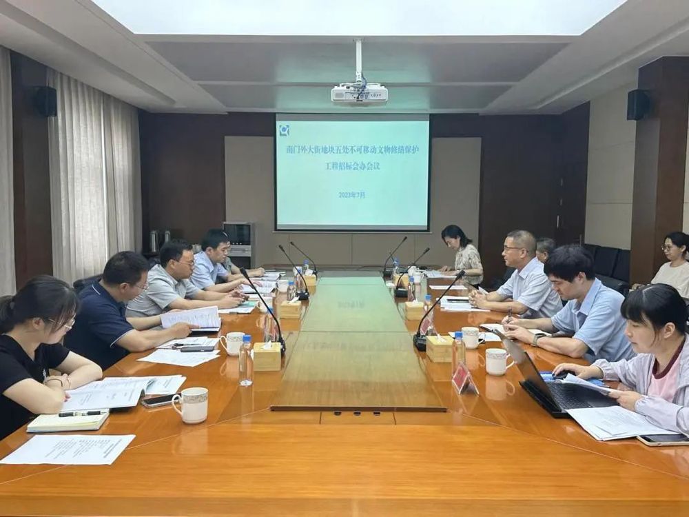 為加快推進南門外大街保留建筑項目建設,7月14日上午,城控集團組織召開南門外大街地塊五處不可移動文物修繕保護工程施工、監理招標會辦會。集團黨委委員戴興春、集團副總經理吳健、集團有關部室負責人、名城公司、編審標單位、招標代理公司等相關人員參加會議。