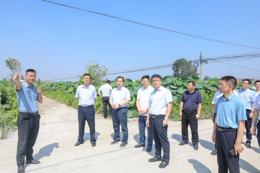 為貫徹落實國有企業結對幫扶經濟薄弱村動員部署會會議精神,8月10日,集團黨委書記、董事長張思忠帶隊赴寶應縣望直港鎮軍師村開展結對共建工作現場調研。市國資委黨委副書記華占軍,集團黨委副書記、總經理潘涵,黨委副書記徐飛,副總經理周平、季紅軍,總會計師何志軍及集團辦公室、黨群部負責同志參加調研,寶應縣委常委、組織部部長陳五湖以及寶應縣農業農村局、望直港鎮和軍師村等有關負責同志陪同調研。