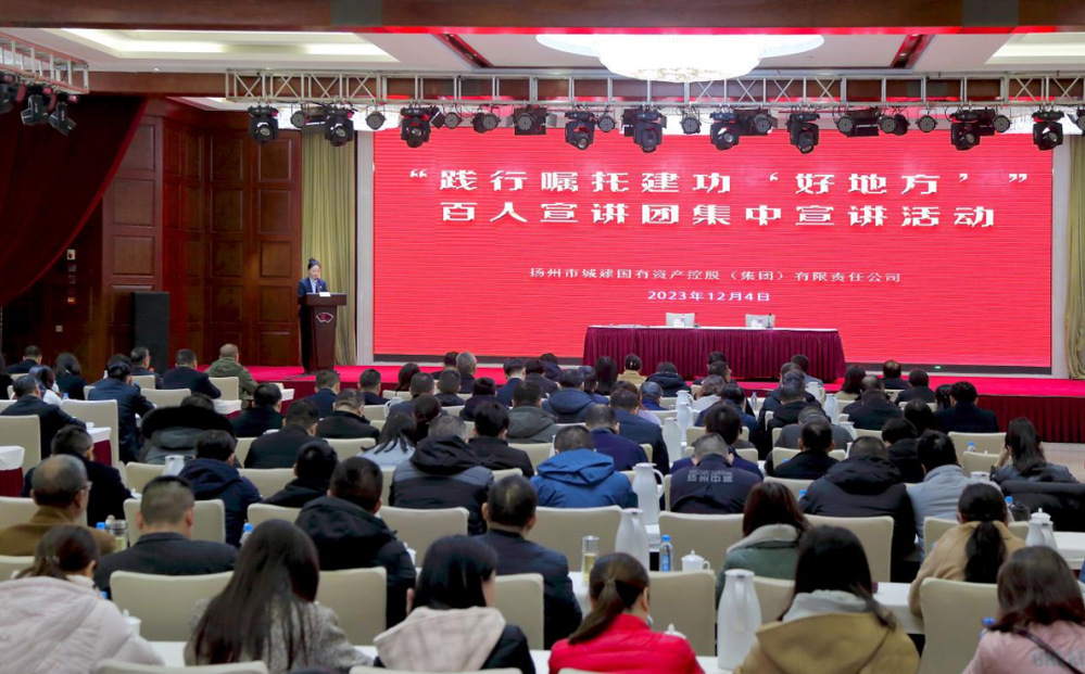 活動中,“踐行囑托建功‘好地方’”百人宣講團成員——來自城建置業公司的基層黨員刁藝璇從開展主題教育的重要意義、目標要求入手,詳細闡述了主題教育“學思想、強黨性、重實踐、建新功”這個總要求的豐富內涵以及具體實踐要求,講清楚了“踐行囑托建功‘好地方’”的任務是什么,黨員干部應該怎么干,激勵廣大黨員干部牢記囑托、發力奮進,為“好地方”揚州建設貢獻力量。