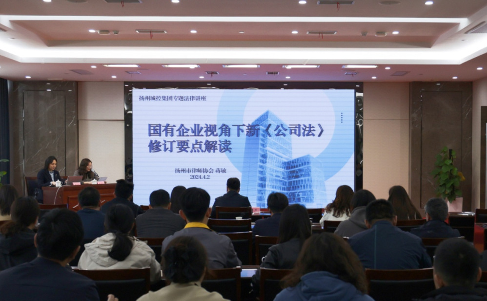 4月2日下午,城控集團組織開展新《公司法》專題法律講座,深入學習新《公司法》重大修訂內容,推進集團依法治企與合規管理。活動邀請揚州市律師協會副會長蔣敏授課,集團副總經理吳健出席活動并講話,集團法務部、各單位法務分管領導、職能部室負責人及法務專員近60人參加講座。