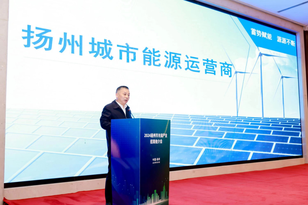 4月25日,2024年揚州市光儲產業招商推介會在花園國際大酒店舉行。城控集團副總經理、能源集團董事長孔德存出席活動并致辭,相關人員陪同。