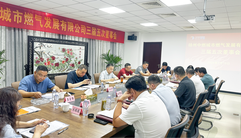 7月19日上午,揚州中燃公司召開三屆五次董事會。城控集團副總經理、揚州中燃公司董事長孔德存主持會議。公司董事會成員出席會議,公司監事、股東雙方相關職能部室負責人、揚州中燃公司經營層列席了會議。