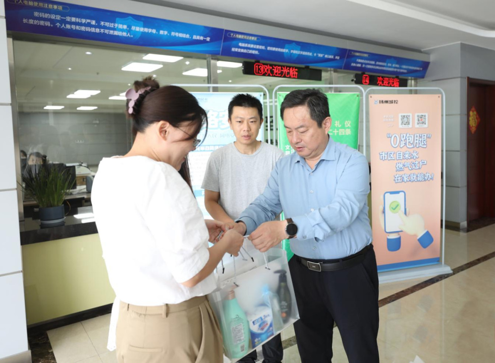 “高溫天氣,工作辛苦,大家要好好照顧自己,做好個人防護?!?炎炎夏日送清涼,滴滴關愛暖人心。每到一處,城控集團董事長張思忠都詳細詢問職工們高溫天氣下的工作和生活狀況,叮囑大家,勞逸結合,做好防護,確保安全生產和身體健康。