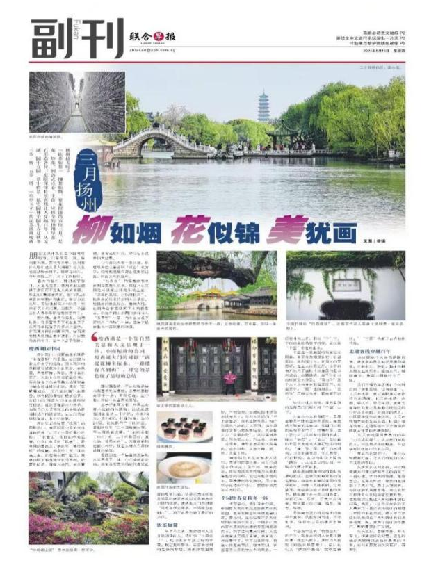 8月15日,新加坡《聯合早報》“中文副刊”專欄以大幅版面對揚州文旅資源進行了深度報道,內容涵蓋瘦西湖、個園、東關街長樂客棧及揚州早茶文化等多個板塊,引發海內外華人廣泛關注,截至目前全球媒體轉載量達127家次,覆蓋英語、法語、德語、西班牙語、日語、韓語、泰語等多個語種。