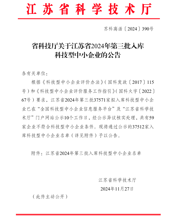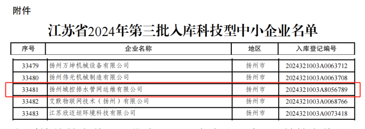近日,江蘇省科學技術廳公布了江蘇省2024年第三批入庫科技型中小企業名單,管網公司下屬子公司運維公司榮獲江蘇省2024年“科技型中小企業”稱號?!翱萍夹椭行∑髽I”由江蘇省科技廳授予資質并備案,是企業創新能力“認證”的重要標志。