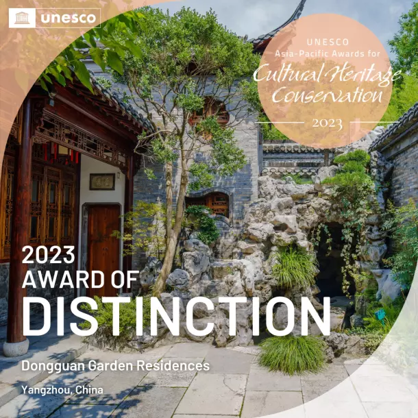東關歷史文化街區位于揚州明清古城東北隅,東起古運河,西至國慶路,南臨文昌中路,北達鹽阜東路,面積3.4平方公里,是城內迄今保存最為完整、規模最大的歷史文化街區。街區沿線歷史遺存薈萃,其中個園、汪氏小苑、唐宋東門遺址、逸圃為國家級文物保護單位,曹起溍故居、壺園、劉文淇故居、丁姓鹽商住宅等為市級文物保護單位。2023年末,聯合國官網發布了《2023年亞太文化遺產保護獎獲獎者名單》。“東關歷史文化街區園宅保護與傳承復興項目”從亞太地區8個國家48個參賽項目中脫穎而出,獲評聯合國教科文組“2023年度亞太文化遺產保護獎杰出獎”。是全國唯一獲得“杰出獎”的文保項目。聯合國教科文組織在項目評審語中寫到“東關歷史文化街區是傳統文化與當代景觀設計的完美結合,為亞太地區古典園林保護及活化利用提供了重要參考”。