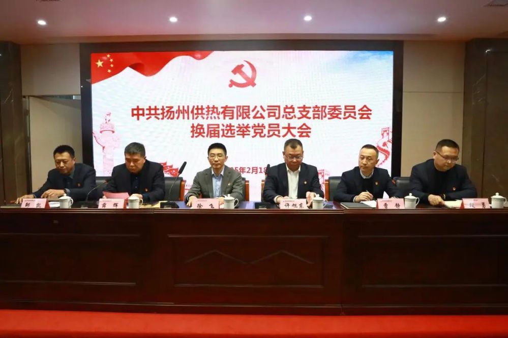 2月18日下午,中共揚州供熱有限公司總支部委員會召開換屆選舉大會。城控集團黨委副書記徐飛到會指導,供熱公司全體黨員參加會議。