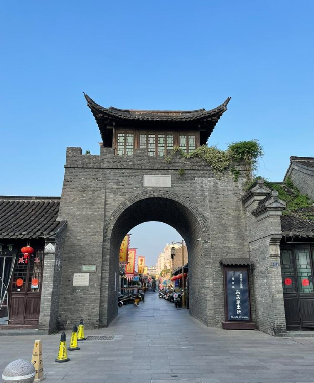 在揚州這座被時光浸潤的文化名城中,東關街宛如一條鎏金的歷史長河,自唐宋流觴而來,蜿蜒三里有余。青磚黛瓦間,市聲若夢,茶樓酒肆的旌旗與鹽商宅第的雕窗在晨霧中次第舒展。行至街巷最富韻致的轉角處,但見一座古樸的石牌坊悄然矗立,這便是東圈門——這道始建于明代的石券門,恰似長河分脈處鐫刻的印章,將東關街的市井煙火悄然沉淀為翰墨書香。