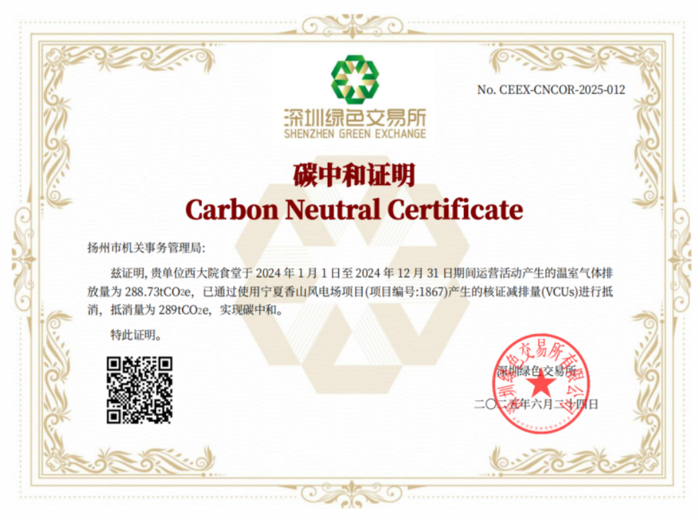 近日,由能源集團攜手機關事務局共同打造的全省首個機關零碳食堂項目順利投運,該項目位于揚州市政府西大院食堂,采用“光伏+碳匯+數字能源調度”綜合用能方式,即通過樓頂分布式光伏發電供應“綠電”,結合購買碳匯抵消剩余排放,最終實現食堂運營碳中和。2024年西大院食堂運營全年產生溫室氣體排放量288.73噸,能源集團提供充分技術支持,通過碳匯抵消,實現了從能源供給到終端消費的全鏈條減排,并獲得了深圳綠色交易所碳中和認證。當“光盤行動”遇上“綠電革命”,零碳食堂不僅是公共機構主動領跑,率先推動綠色減排的務實舉措,更是政企合作共探區域綠色低碳轉型的生動實踐。