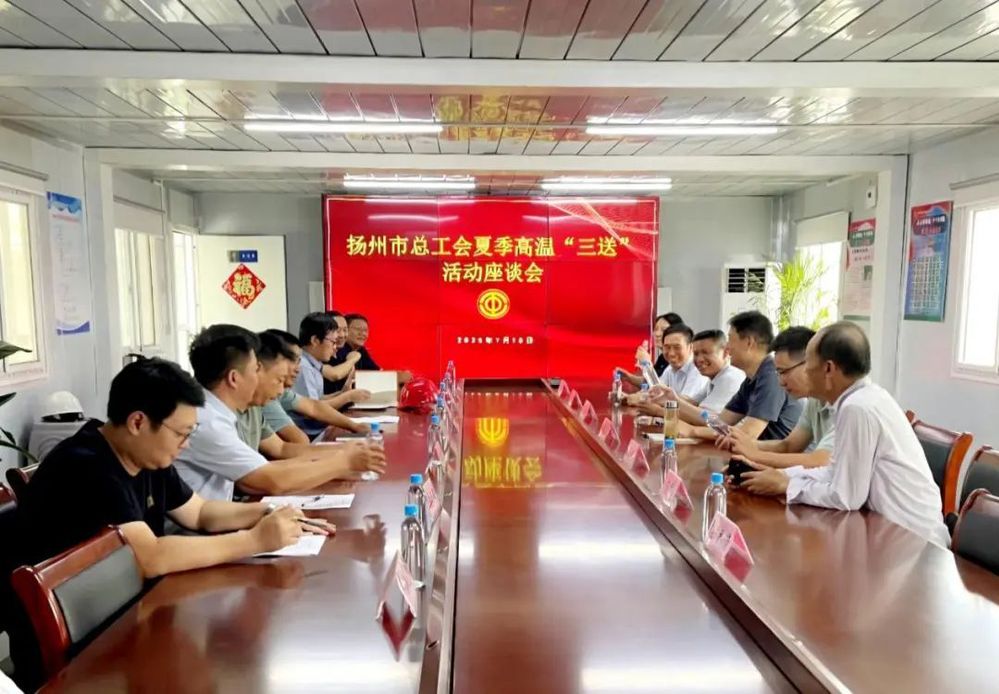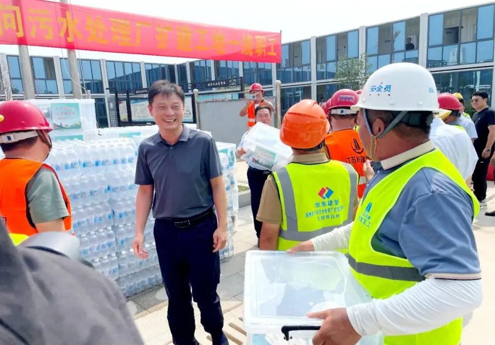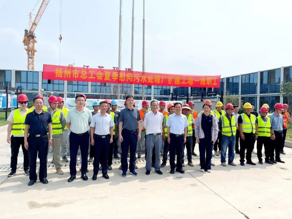 烈日炎炎,高溫來襲。為切實做好防暑降溫工作,保障一線人員身體健康權益,7月15日下午,揚州市總工會副主席孫凌雷帶隊組成“送清涼”慰問組,來到六圩污水處理廠擴建工程現場,為奮戰在高溫一線的工作人員送去防暑物資與深切關懷,讓“清涼”沁潤心田。