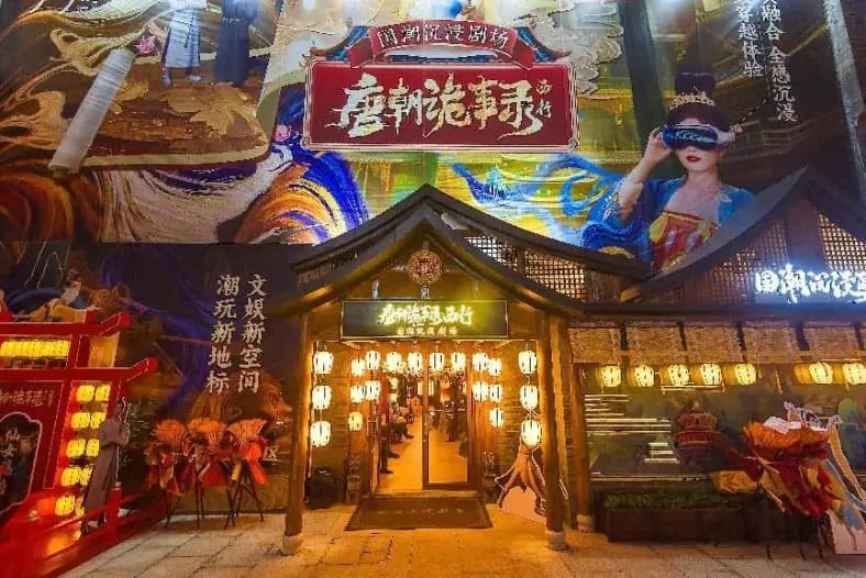《唐朝詭事錄·西行》國潮沉浸劇場是城控集團2024年聯手愛奇藝、星瀚互娛共同打造的城市文化體驗新空間。項目創新性融合VR虛擬體驗與6D全感體驗概念,通過影視IP活化+在地文化賦能+科技沉浸賦能三重融合,構建集歷史感知、文化互動、科技體驗于一體的新技術文商旅融合體驗空間。