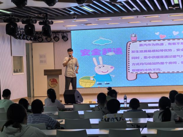 活動中,來自能源集團下屬的揚州中燃和供熱公司的志愿者們,通過精彩的課程設置和生動的講解展示,以通俗易懂、寓教于樂的形式,向小朋友們系統講述了燃氣的性質、使用注意事項、泄漏應急處理以及供熱系統的運行原理、集中供暖的優勢、供熱安全注意事項等內容。