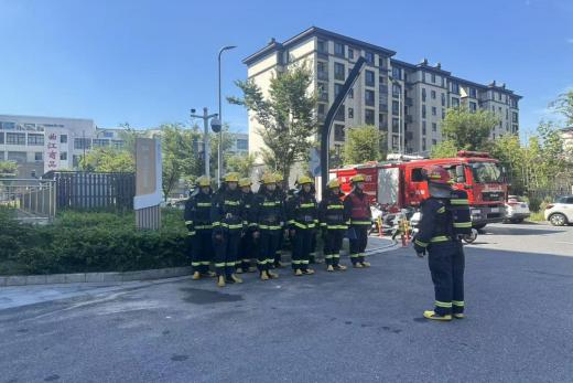 9時45分,演練啟動。模擬1樓某商鋪因電路故障起火,濃煙觸發煙感報警后,中控室立即啟動應急預案:一方面迅速組織人員疏散群眾、設置安全警戒區域;一方面立即聯系消防大隊,同步精準傳遞 “火情” 信息。消防救援力量抵達現場后,快速架設水槍壓制 “火點” ,并全面排查 “被困人員”,雙方配合默契、行動高效。經過30分鐘的協同處置,“火情” 成功被控制,演練圓滿結束。