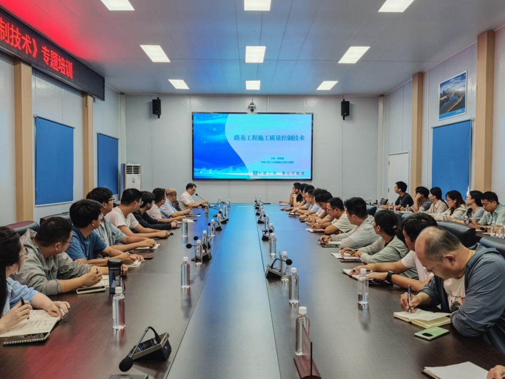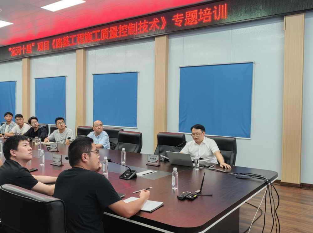 主講人以“路基工程施工質量控制技術”為題,引用路基工程施工真實案例,從施工準備、施工流程、施工要點,到常見施工問題及建議,細致而全面地講解了改良土路基施工和雙向攪拌樁路基施工的技術工藝及質量控制,培訓內容兼具技術性、針對性和可操作性,為“運河十里”項目后續建設工作打下堅實基礎。