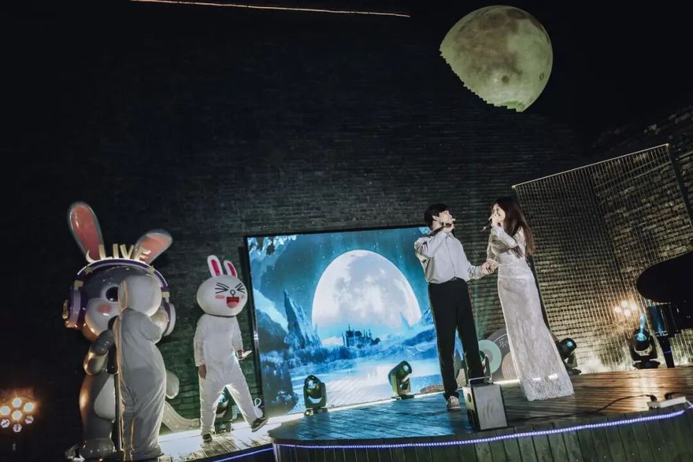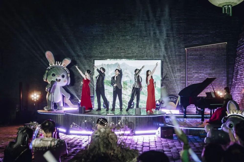傍晚六點半,音樂會在主持人熱情洋溢的開場中拉開帷幕。在介紹完活動 “文旅賦能、文化碰撞、空間創新”的核心理念與到場嘉賓后,“紙鳶叩月?啟幕盛典” 儀式成為全場首個高潮——嘉賓們共同執起 “時光之鑰”,叩響象征古今交融的 “時光月門”。伴隨主題旋律奏響,系著熒光絲帶的大紙鳶從東關城樓緩緩升空,嫦娥舞者輕盈起舞,冷焰火瀑布傾瀉而下,光影與音樂交織,瞬間將千年甕城化作連接歷史與當下的 “音樂劇場”,正式宣告 “樂下東關” 微 Live 時光音樂會啟航。