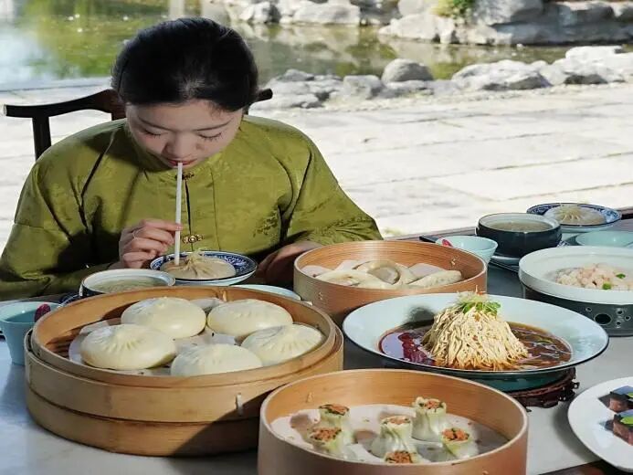 長樂客?!扒镯嵲绮柩偶敝噩F清代鹽商“早茶會客”的雅趣,蟹黃湯包、翡翠燒賣等淮揚名點搭配古箏琵琶演奏,讓游客在舌尖與耳畔同步感受非遺魅力。隔壁的芍藥園子書場內,評彈藝人傾情演繹《珍珠塔》《雙金錠》等經典曲目,場場爆滿的盛況印證著傳統曲藝的當代生命力。長樂鹽商宴更是海納八方客,單日最高接待量突破200人次,沉浸式鹽商家宴成為美食愛好者的全新打卡地標。